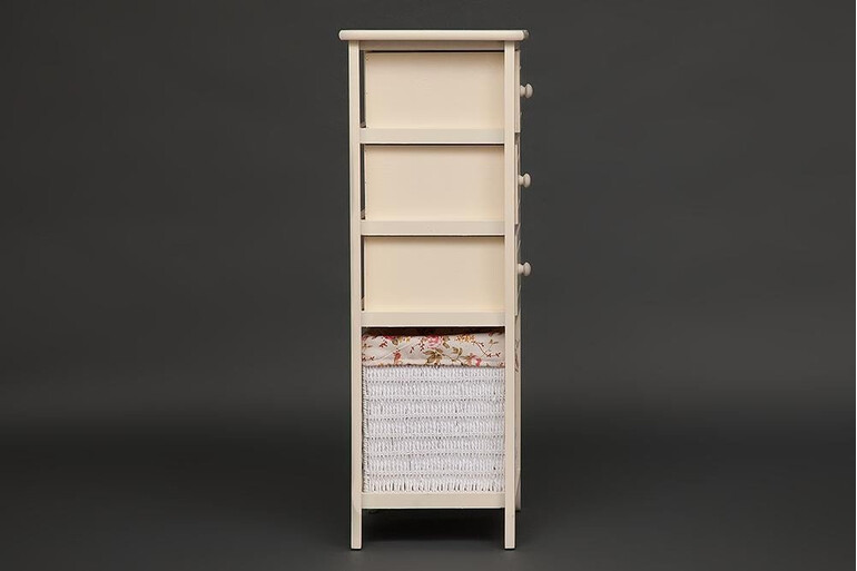 Великолепная тумба Secret de Maison ARC 3 из коллекции SAINT-TROPEZ, созданной по проектам французских дизайнеров, выполнена из массива павловнии. Изящная форма и идеальные пропорции – этот предмет интерьера станет украшением вашего дома, привнесет в него неповторимый шарм и очарование. Прочный каркас из массива павловнии, покрашенный в цвет слоновой кости, плетеная корзина из бумажного жгута и съемный тканевый чехол с нежным цветочным принтом подчеркивают красоту и благородство изделия. Три выдвижных ящика и корзина ручной работы удобны для хранения большого количества предметов. Тумба отлично впишется в интерьер спальни или гостиной. Натуральная древесина павловнии, обработанная прозрачным маслом, проста в уходе и будет долгие годы радовать вас своим первоначальным видом. Тумба прекрасно сочетается с мебелью из коллекции SAINT-TROPEZ, поставляется в собранном виде.