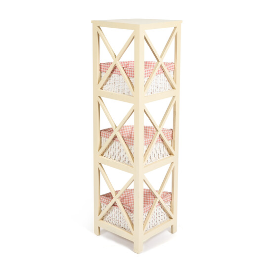 Изумительно красивый дизайн угловой этажерки Secret de Maison ANGULAIRE 3 из французской коллекции SAINT-TROPEZ привлекает своей креативностью, функциональностью и организацией пространства. Этажерка способна стать не просто частью комнаты, но и задать тон вашему интерьеру. Каркас из массива павловнии, три плетеные корзины из бумажного жгута и съемные тканевые чехлы с нежным принтом отличаются изысканностью и простотой, проявляющимися в каждой детали. Открытые боковые стенки придают этажерке легкость и индивидуальность. Легкие плетеные корзины ручной работы можно использовать отдельно от этажерки, поставить в любой части комнаты и переместить при необходимости. Массив павловнии долговечен, прочен, надежен и не требует специального ухода. Модель отлично гармонирует с мебелью из коллекции SAINT-TROPEZ, поставляется в собранном виде.